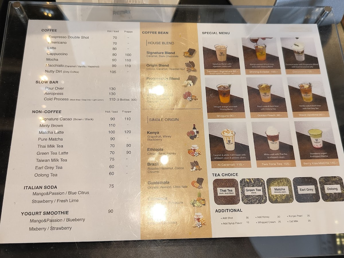 The coffee menu is a delightful fusion of traditional and innovative flavors. Try their Iced Americano for THB 60.00, which boasts a strong yet smooth flavor, or indulge in the Iced Latte for THB 65.00, a creamy delight that captivates your senses. The Iced Caramel Macchiato, priced at THB 75.00, is a must-try for those who enjoy a sweet twist to their coffee—its rich caramel notes complement the robust espresso perfectly. If you're in the mood for something refreshing, their Iced Matcha Latte made with imported matcha from Shizuoka, Japan, priced at THB 75.00, is a heavenly experience that offers a balance of slight bitterness and rich umami without overwhelming sweetness, as noted by a satisfied customer.